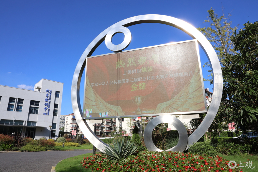 近日,上师大附属杨浦现代职业学校门口的LED大屏幕上,滚动播放焦娇同学获得全国技能大赛车身修理项目冠军的庆贺海报,让附近居民和路人过目不忘,同时惊叹“原来焦娇是个21岁的男孩子!”