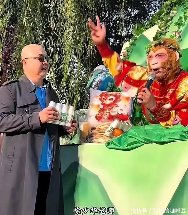 徐少华拿着一联AD钙奶走向被压在“五行山”下的“雪饼猴。 猴王见到师父瞬间激动得声音都变了: “师父!师父!你得救我...” 完美重现了孙悟空期盼唐僧相救的经典场景, 逗得全场观众哈哈大笑。